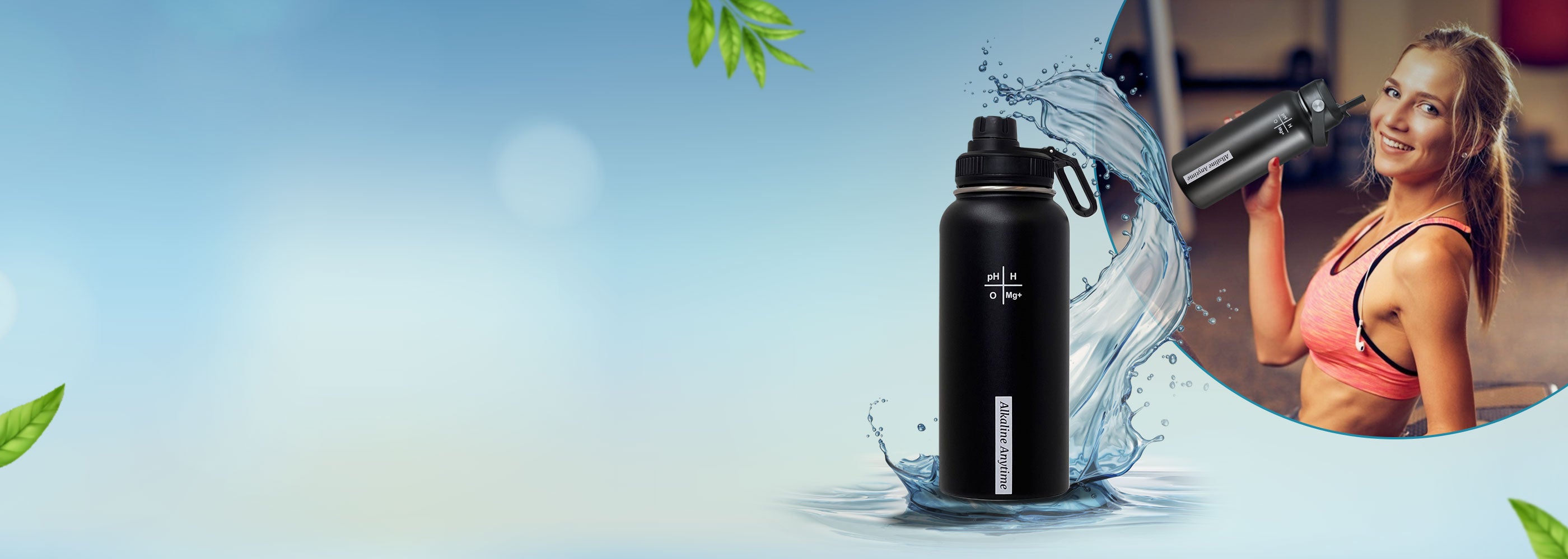 Alkaline en cualquier momento Sports Alkaline Water Bottle-1 (9.5ph) Filtro alcalino e infusor de acero inoxidable