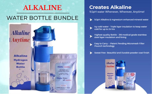 Alkaline en cualquier momento Sports Alkaline Water Bottle-1 (9.5ph) Filtro alcalino e infusor de acero inoxidable